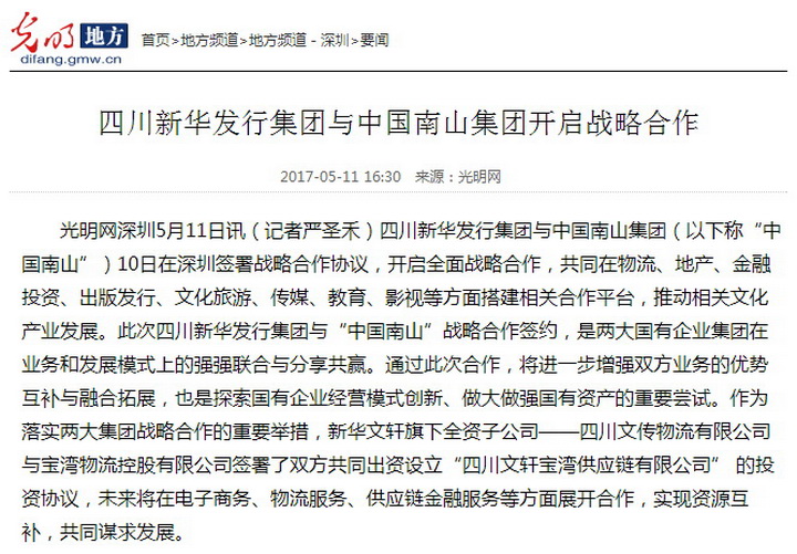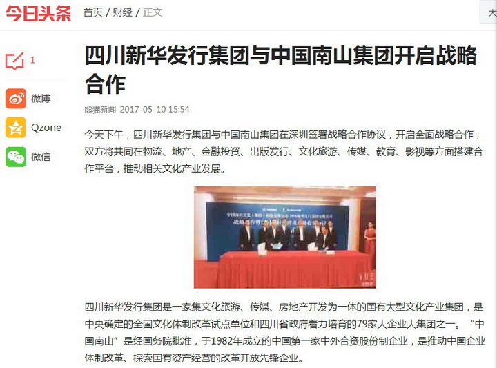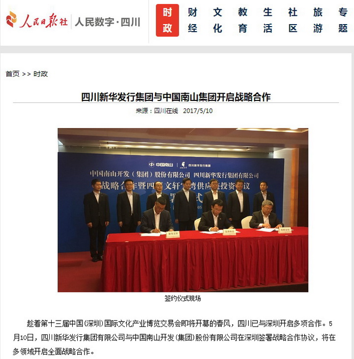 原文标题:四川新华发行集团与中国南山集团开启战略合作