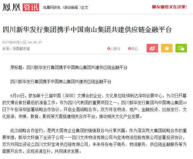 原文标题:四川新华发行集团携手中国南山集团共建供应链金融平台